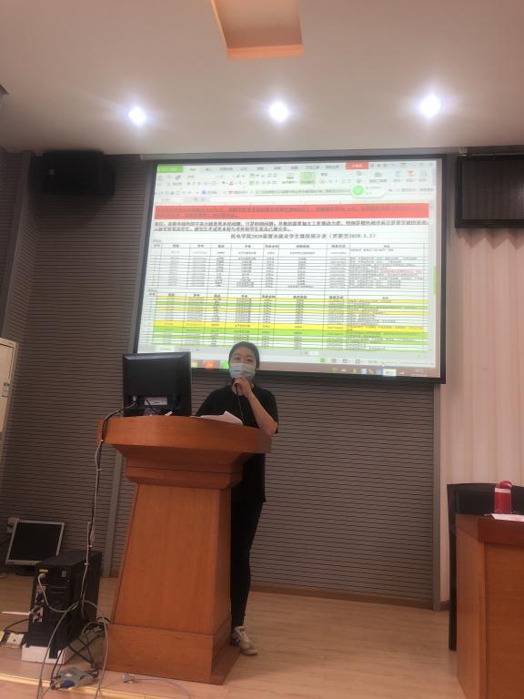 16级辅导员罗采薇首先汇报了当前2020届毕业生就业进展状况。从目前毕业生的协议签约率和升学率、学院“一把手”责任落实、“全员参与就业”任务分解等几个方面介绍了就业工作的现状,并针对目前学生签约、解约、2战等重难点问题进行了分析,提出了下一步工作建议。